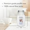- 100% natural fiber cotton wick straightened and centered for a clean, even burn